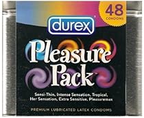 Durex Pleasure Pack Condom Tin Review: Great buy for the money. The condoms are of great quality and quantity. Only issue is i am yet to figure out the color coding to the individual condoms. There are 48 in the tin, 8 of each type. Each type is a different color so its sort of tough to figure out the color coding system. Itd be nice to a have it on the packaging, but otherwise a great buy. 31 ... Read more »